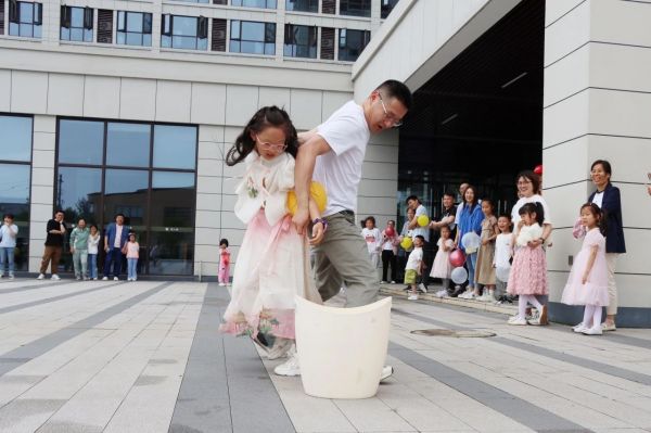 接著,在活動主持人的組織下,小朋友們進行了兩個互動小游戲。大家跟隨著動感的音樂傳遞手中的玩偶,當(dāng)主持人喊“停”時,拿到玩偶的“幸運兒”需要介紹自己并表演一個節(jié)目。小朋友們都十分自信地亮出了“看家本領(lǐng)”,唱歌、跳舞、詩朗誦等等才藝信手拈來,獲得全場一片掌聲。第二個小游戲叫作“合力運球”,員工與孩子背靠背在規(guī)定時間內(nèi)將3個氣球運送到指定地點,既是對親子默契的考驗,更是速度與智慧的較量。最終決出速度最快的前三組家庭,獲得一份小禮品。